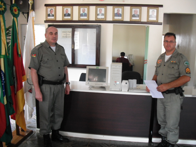 O comando da Brigada Militar em Unistalda recebeu das mãos da vereadora Diulinda Pires (PP), um Microcomputador Celeron, com monitor e periféricos, cedido pelo Presidente da Câmara de Vereadores Sr. Elizeu Almeida De Jesus (PSDB), para uso da corporação.