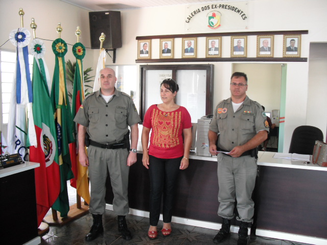 Esteve presente na entrega o 1º Ten Adelar representando o comando do 5º R P Mon, e o 1º Sgt César Kowalski, comandante do 4º GPM.